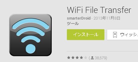 やりとりしたい端末にてGoogle playにて「WiFi File Transfer」を検索し、